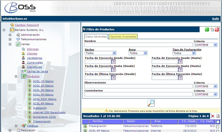 bOSS es una Solución totalmente desarrollada por Berkano, si no encuentra lo que busca, cuéntenos su problema y nosotros desarrollaremos todo lo necesario para adaptar nuestra solución a sus necesidades.