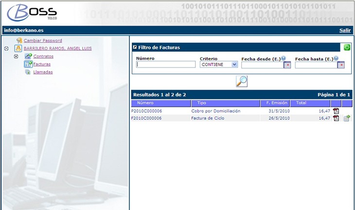 El Sistema es accesible desde cualquier dispositivo conectado a Internet. Sus clientes podrán consultar sus Facturas y Consumos siempre que lo deseen.